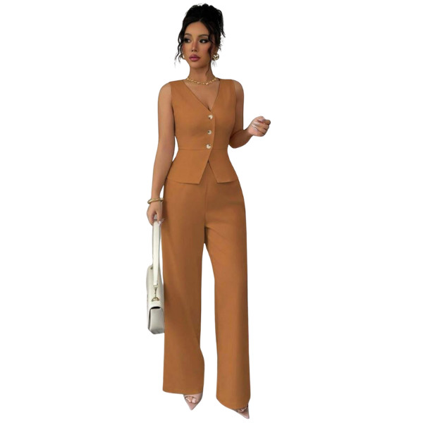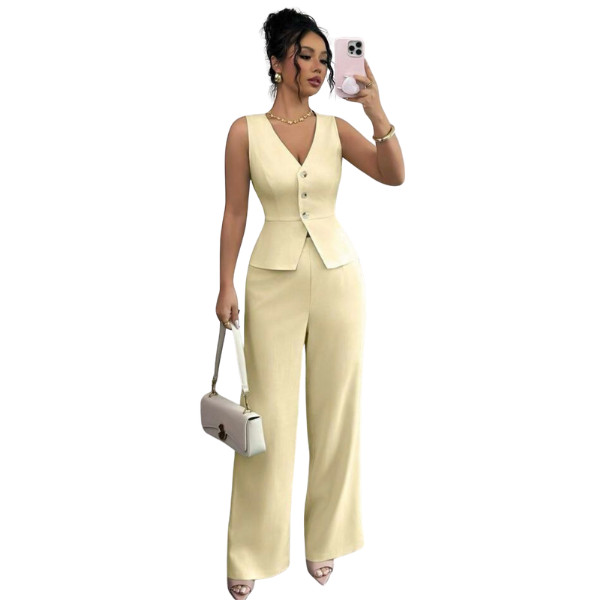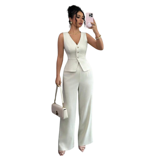 Step into effortless elegance with the Ficerd Women’s 2 Piece Outfit, featuring a sleeveless cotton vest with a V-neck button design and matching wide-leg pants. Perfect for summer business casual, this lightweight set combines professional polish with breathable comfort. Whether for office meetings, lunch dates, or chic travel style, this outfit is a wardrobe essential for the modern woman.