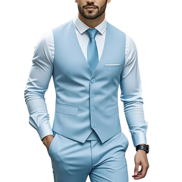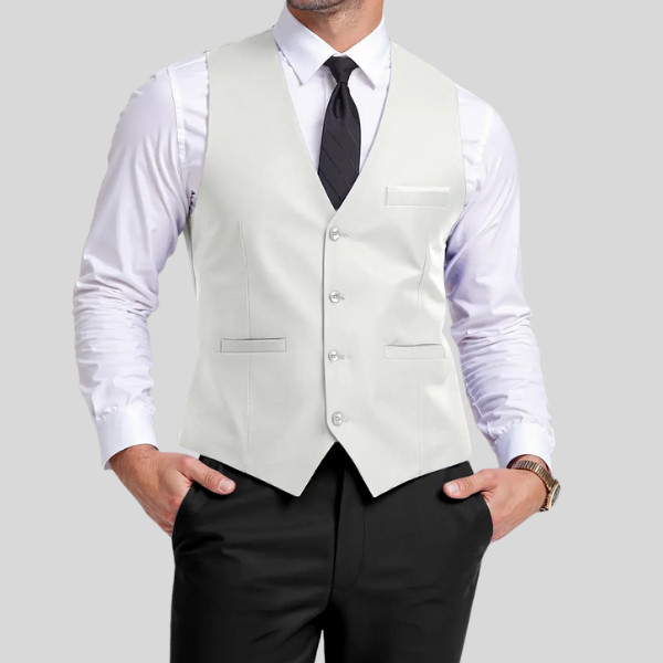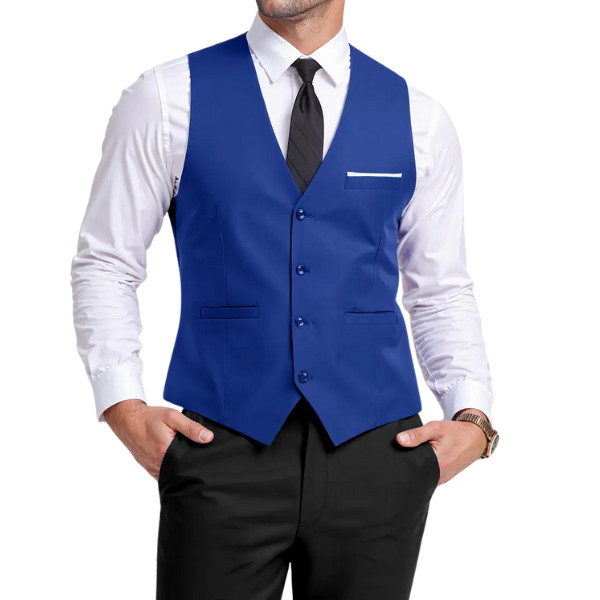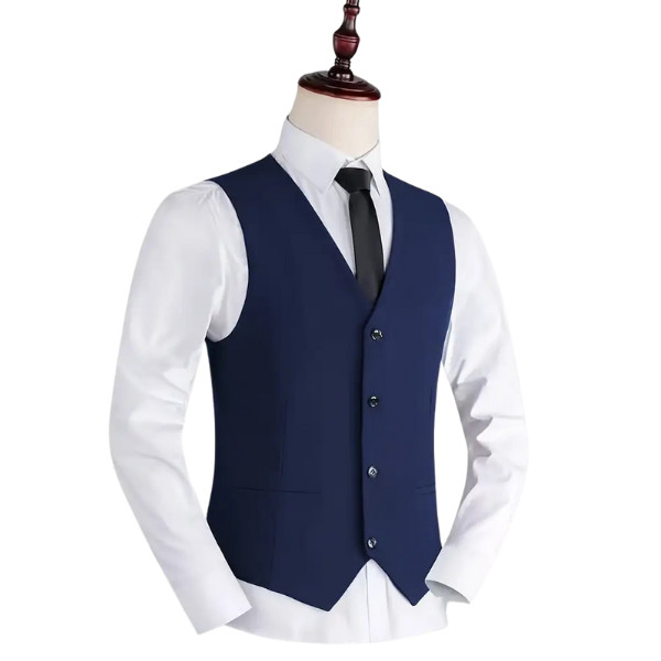 - 👔 Design: Sleeveless, V-neck, Single-breasted with 4-button closure