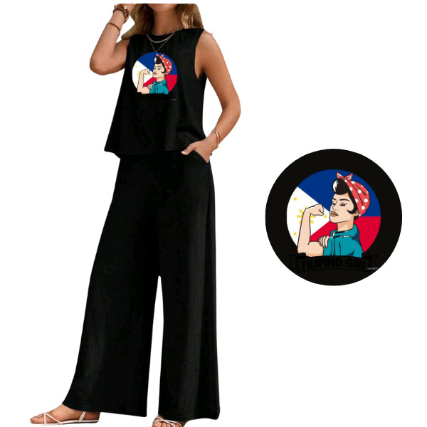 Celebrate style and comfort with our Women’s Casual Two-Piece Set featuring the empowering “Filipino Girl” print. This soft, breathable outfit includes a sleeveless top and wide-leg pants, perfect for lounging, travel, or casual days out.