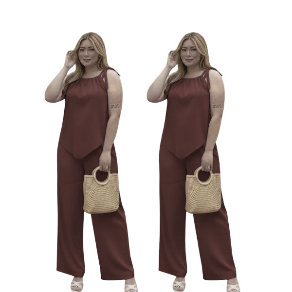 Women’s Plus Size Two-Piece Set – Sleeveless Top & Wide-Leg Pants