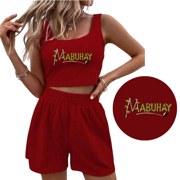 Women’s Ribbed Crop Top & Shorts Set – “MABUHAY” Edition