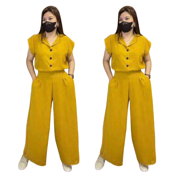 Add a touch of elegance with this soft co-ord set, featuring a stylish button-down top and flowy wide-leg trousers. Perfect for casual outings, office wear, brunch dates, or even semi-formal events. The relaxed yet chic design makes it a wardrobe must-have!