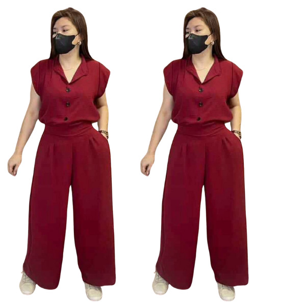 Women’s Two-Piece Set – Button Top & Wide Leg Pants